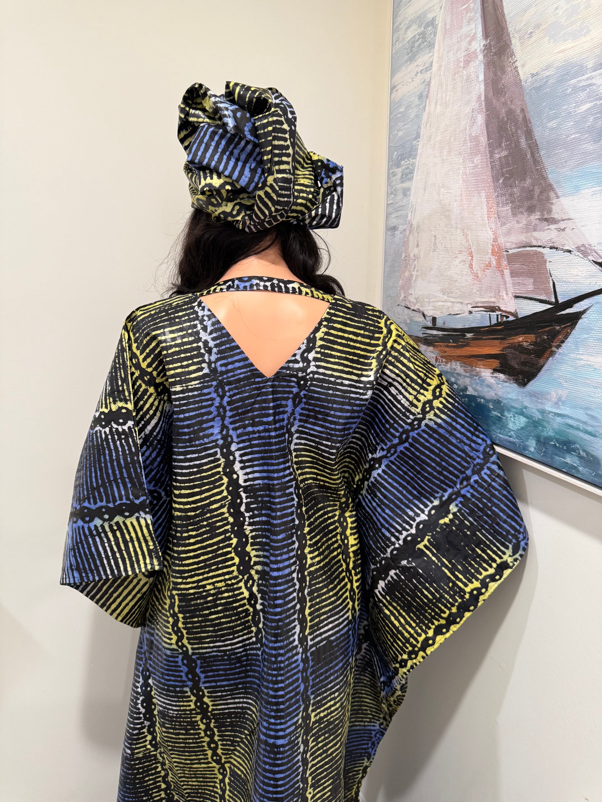 Elegant Batik Kaftan with Matching Headwrap